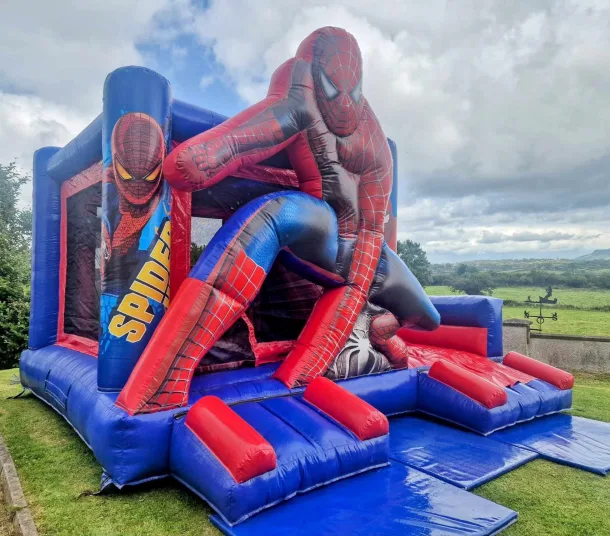 Get ready for superhero-sized fun with our Spiderman Assault Course & Side Slide, available for hire in Blaney, Enniskillen, and surrounding areas of Northern Ireland! Perfect for birthday parties, school fun days, community events, and superhero-themed celebrations, this inflatable offers non-stop action and adventure for kids of all ages.